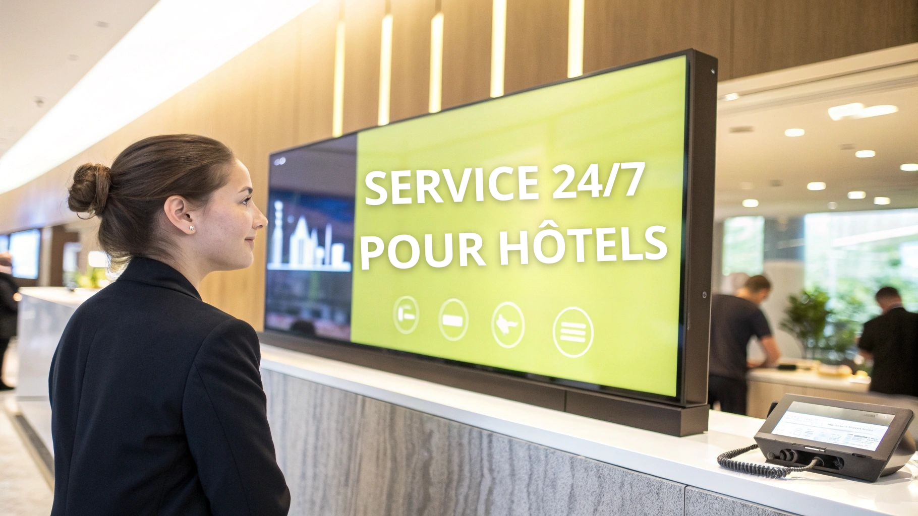 La vraie valeur d'une IA pour un hôtel indépendant, ce n'est pas la technologie en elle-même, mais ce qu'elle fait pour vous au quotidien. On est loin des concepts abstraits ; on parle de transformer des situations opérationnelles parfois compliquées en interactions simples et rentables. C'est en automatisant intelligemment les moments clés que vous pouvez vraiment offrir un service 24/7 en une semaine et voir un effet direct sur vos revenus et la satisfaction client.